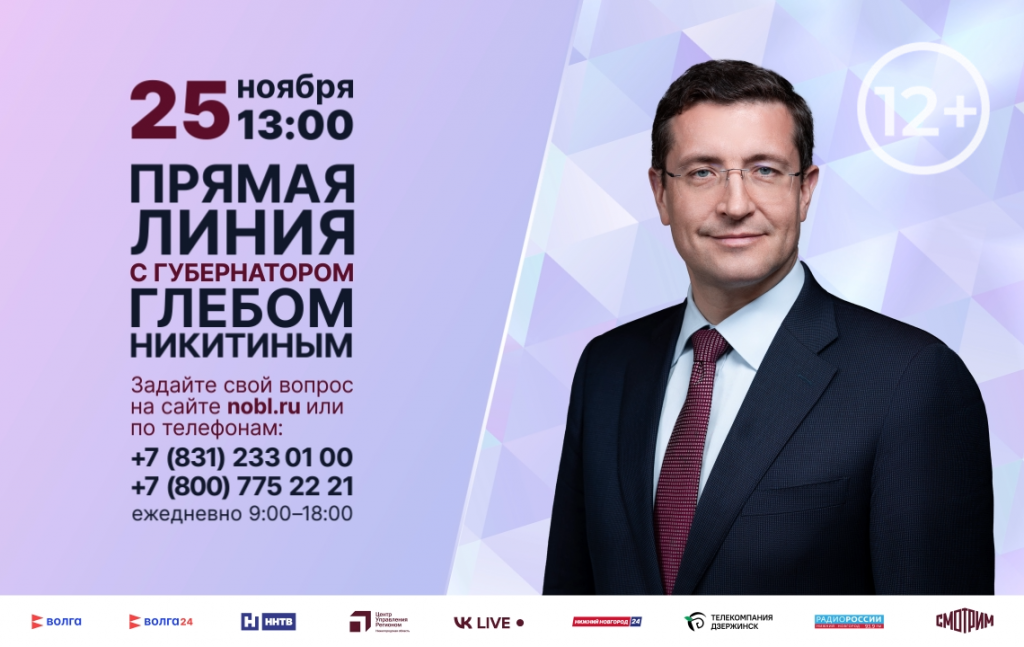 Прямая линия с губернатором Нижегородской области Глебом Никитиным пройдет 25 ноября 2025 года.